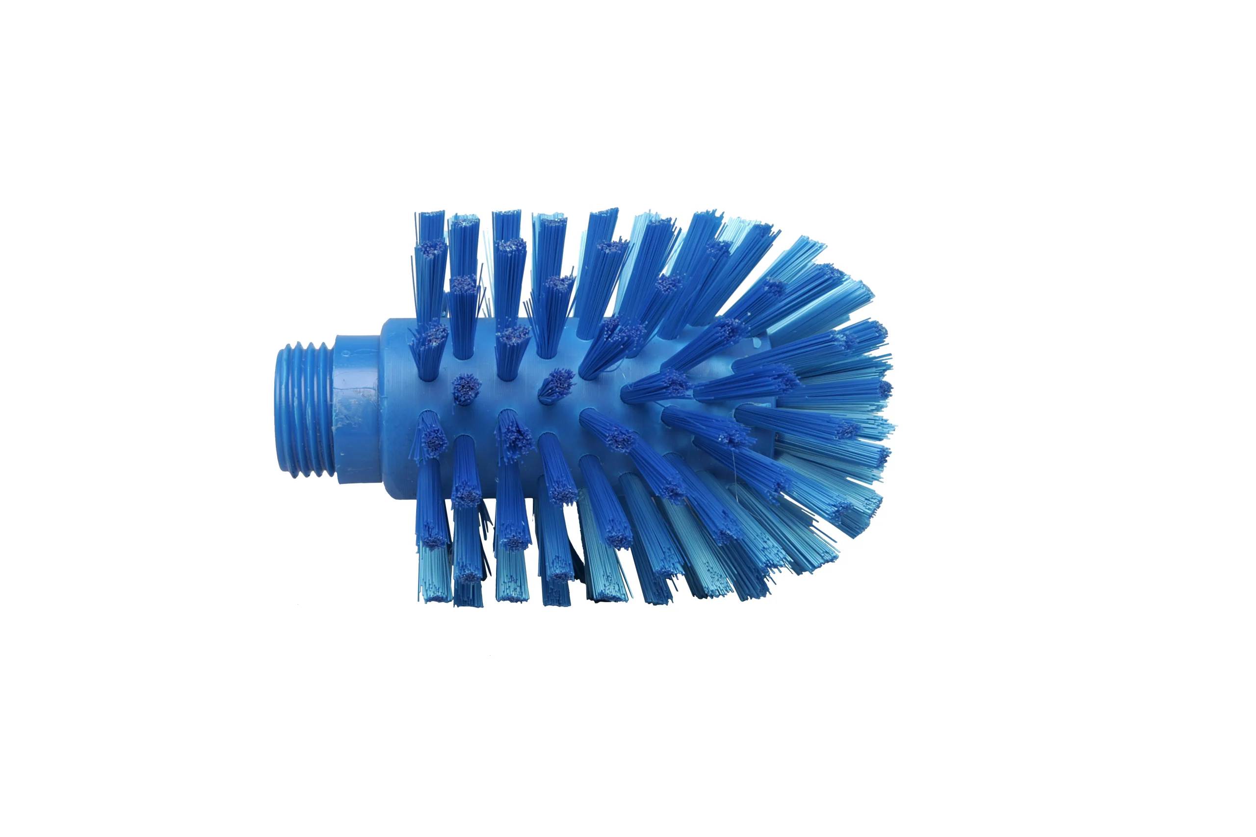 Cepillos diseñados para la limpieza interna de tuberías o desagües, disponibles en distintos diámetros y rigideces de filamentos. Están compuestos por estructura de polipropileno y filamentos de PBT de alta resistencia, que evitan deformaciones y permiten una limpieza efectiva en zonas húmedas. Compatibles con mangos de rosca externa. Adecuados para temperaturas de uso de hasta 80°C y esterilización hasta 134°C.