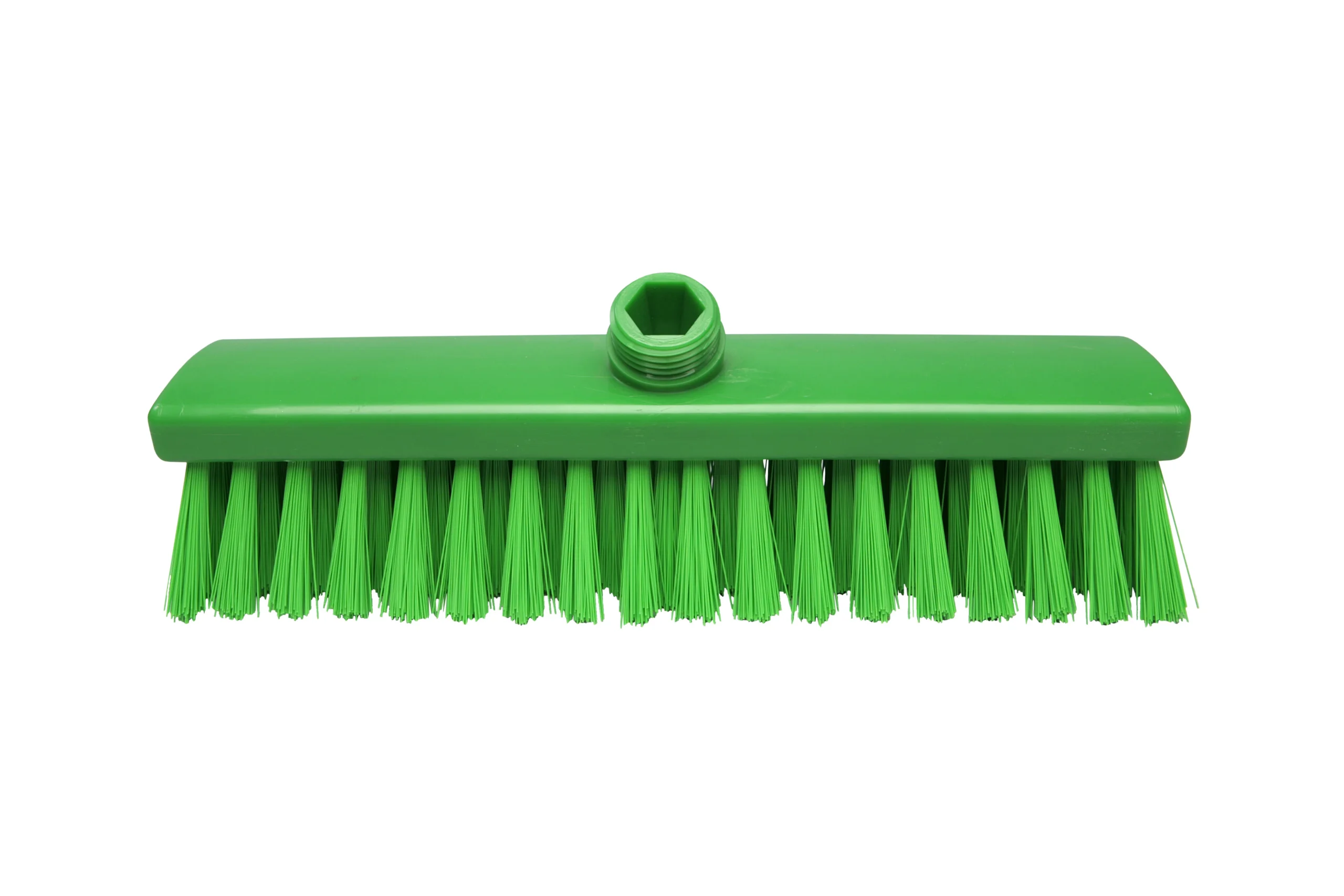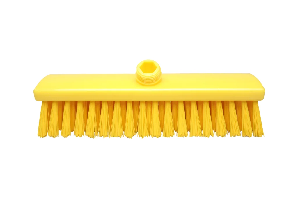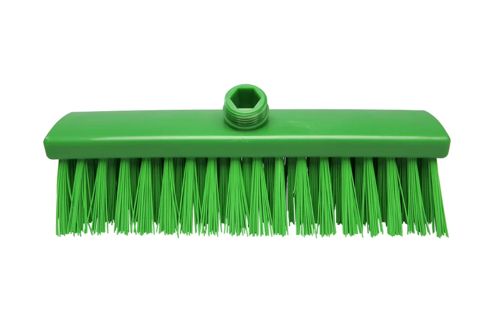 Las escobas rígidas con filamentos extralargos de la línea Clásica cuentan con cuerpo de plástico resistente y cerdas de poliéster PBT de 1,00 mm de diámetro y 110 mm de largo, que garantizan una alta dureza para limpiezas exigentes. Soportan temperaturas de uso hasta 80°C y máximas de 134°C. Equipadas con rosca externa compatible con accesorios FBK (rosca no incluida), están diseñadas para limpieza seca y húmeda de suelos, especialmente en exteriores o para trabajos de limpieza dura, ofreciendo durabilidad y rendimiento superior.