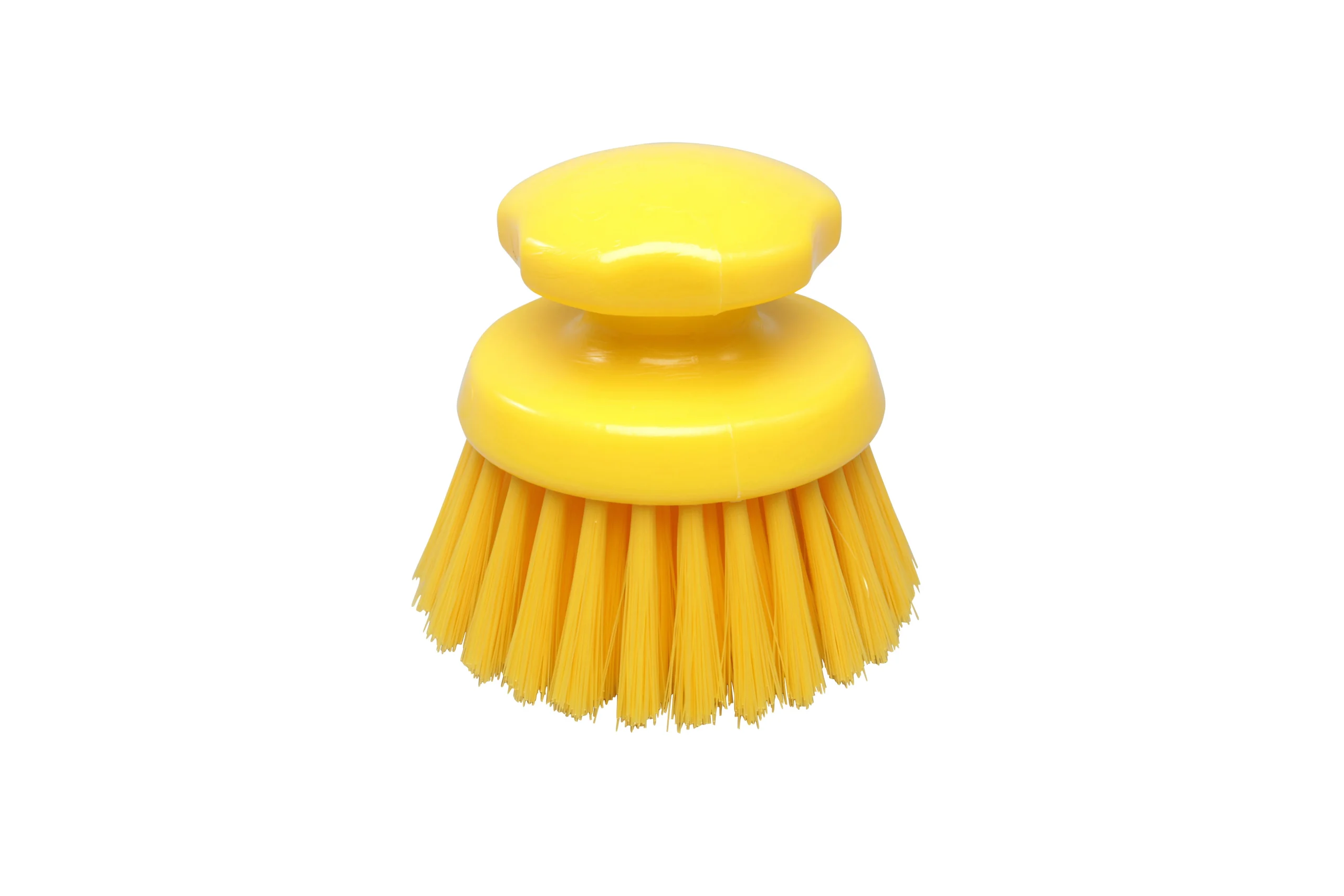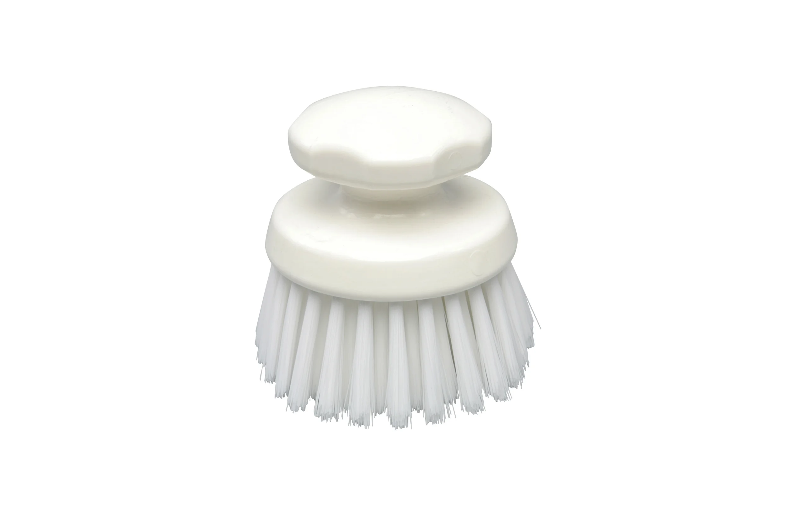 Cepillo de mano redondo con cerdas de rigidez media, PBT 0.30 y altura de 40 mm. Ideal para limpieza de rincones, esquinas y superficies de trabajo.