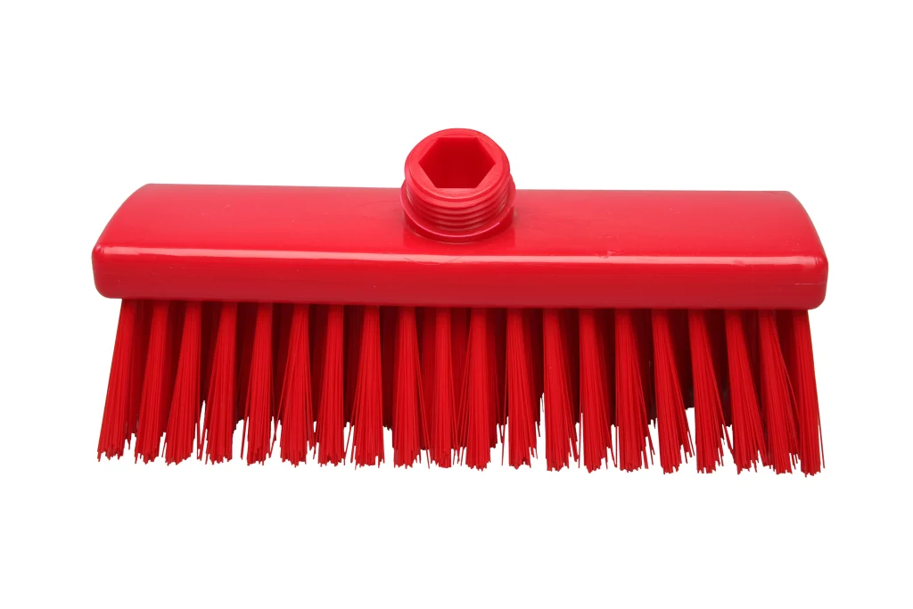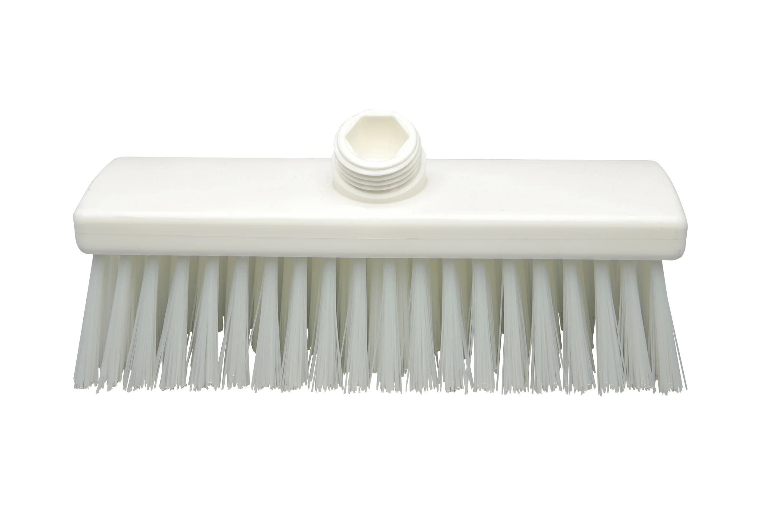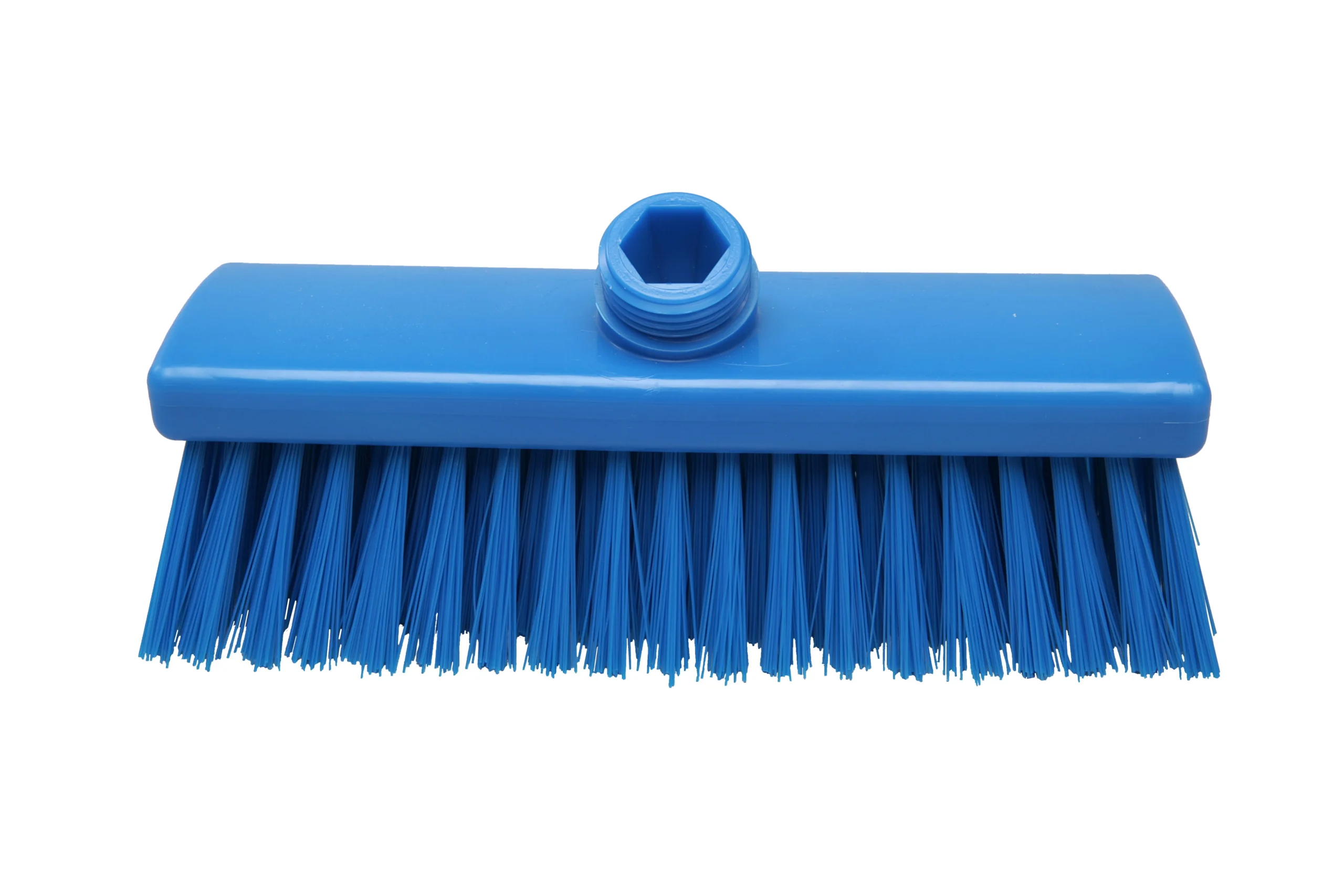 Cepillo para lavar sin paso de agua. Sus cerdas largas de 55 mm lo hacen ideal para la limpieza húmeda de pisos, y su diseño simple lo vuelve una opción versátil, permitiendo también su uso en seco. Fabricado en polipropileno con filamentos de PBT resistentes a un uso intenso sin deformaciones. Compatible con mango estándar de rosca externa (sin paso de agua).
