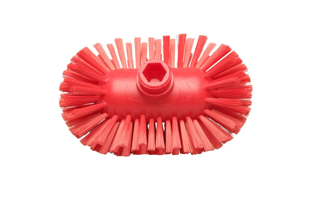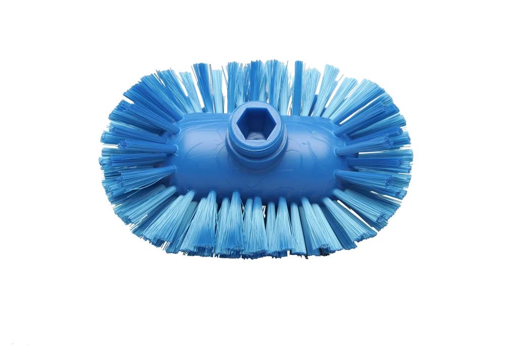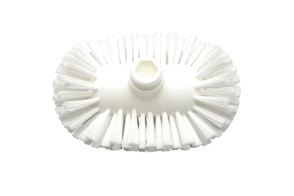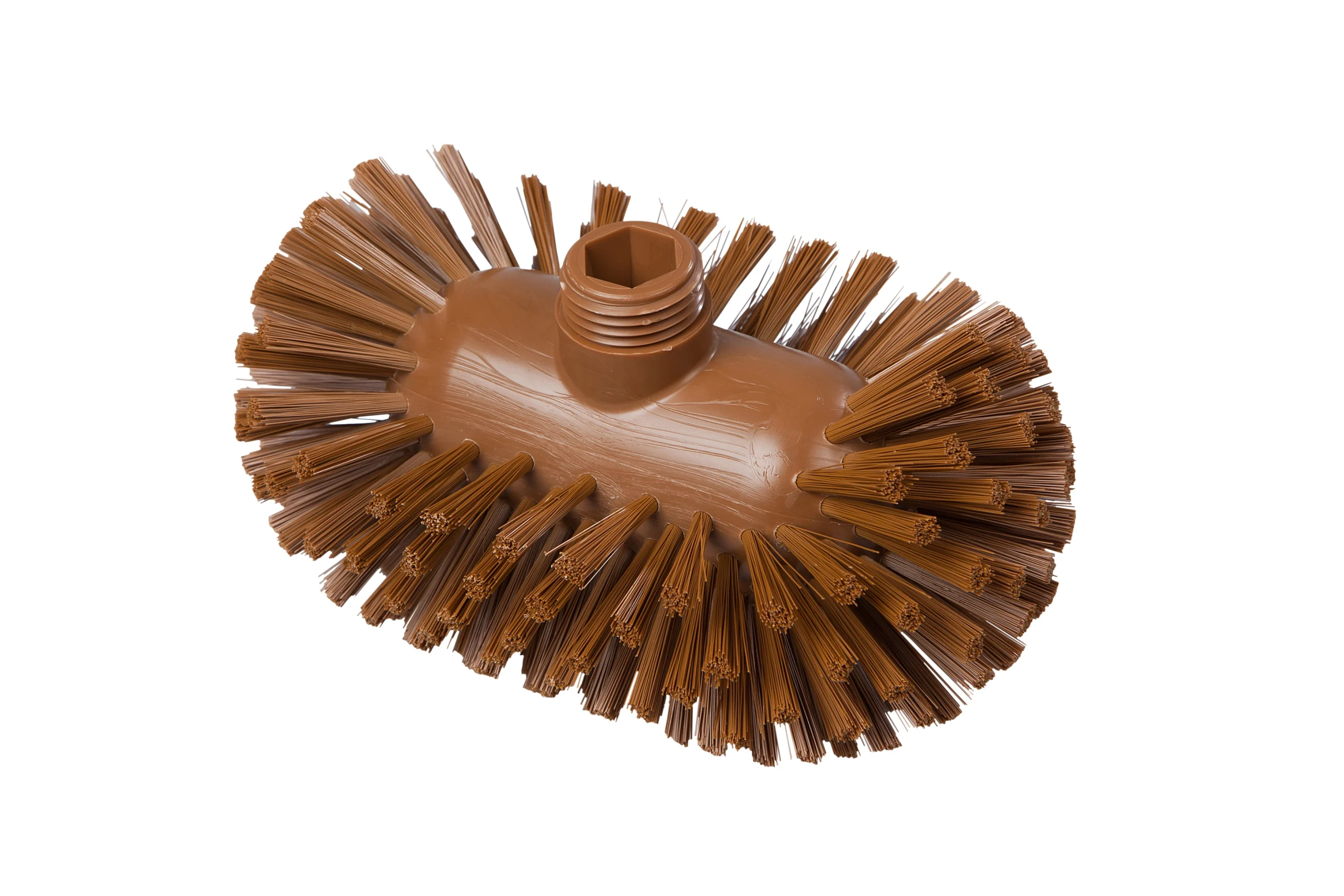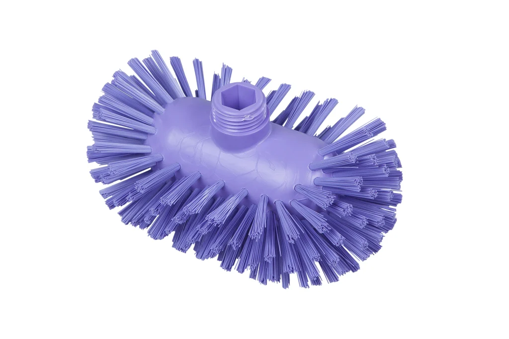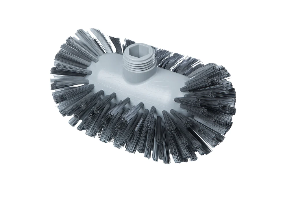 Escobillones diseñados para llegar a esquinas, ángulos y zonas difíciles dentro de recipientes, tanques o desagües. Su estructura curva y robusta facilita la limpieza de puntos complejos, mientras que sus filamentos de PBT ofrecen resistencia al uso sin deformarse. Fabricados en polipropileno, toleran temperaturas de hasta 80 °C y son compatibles con mangos de rosca externa. Ideales para limpieza húmeda en entornos industriales.