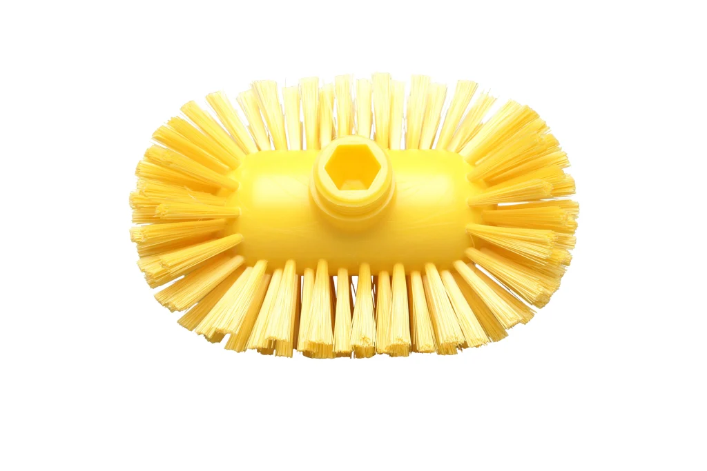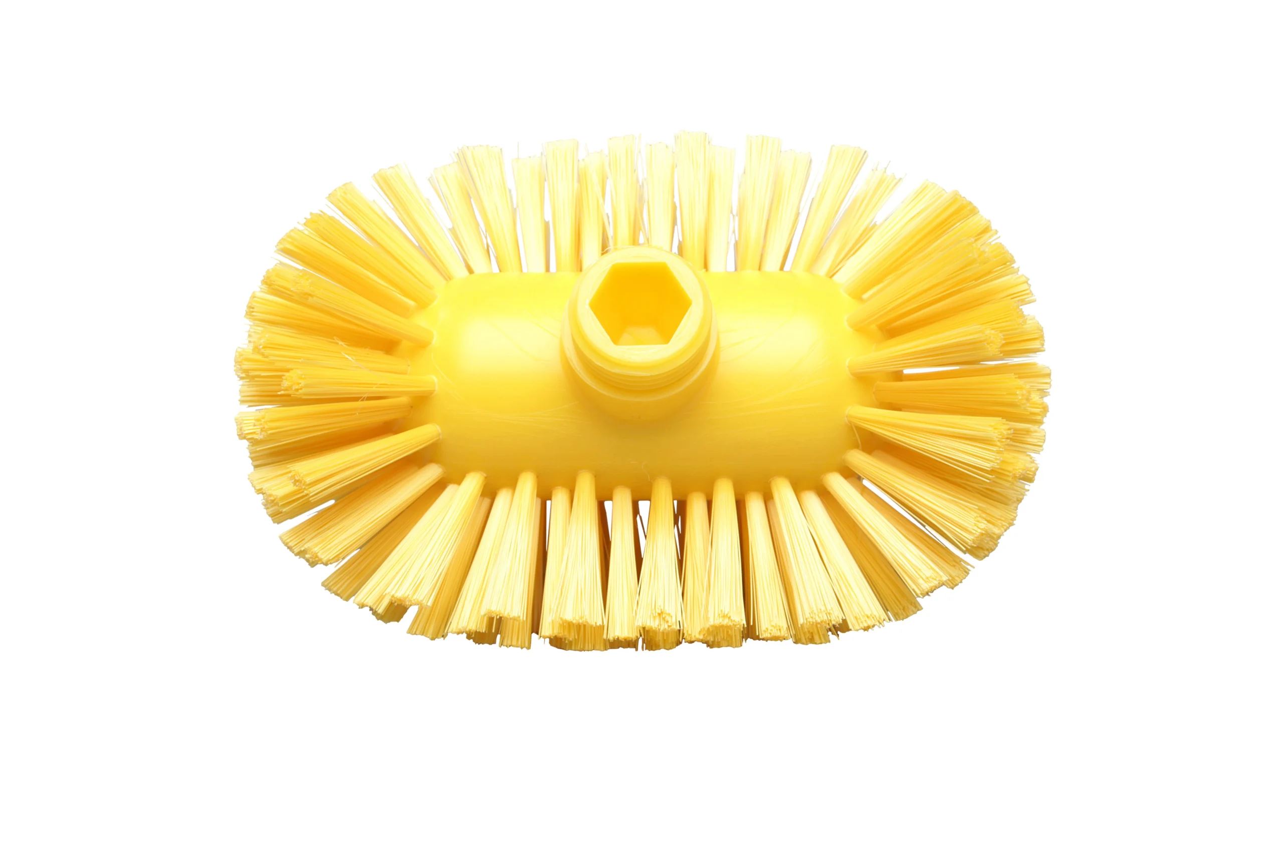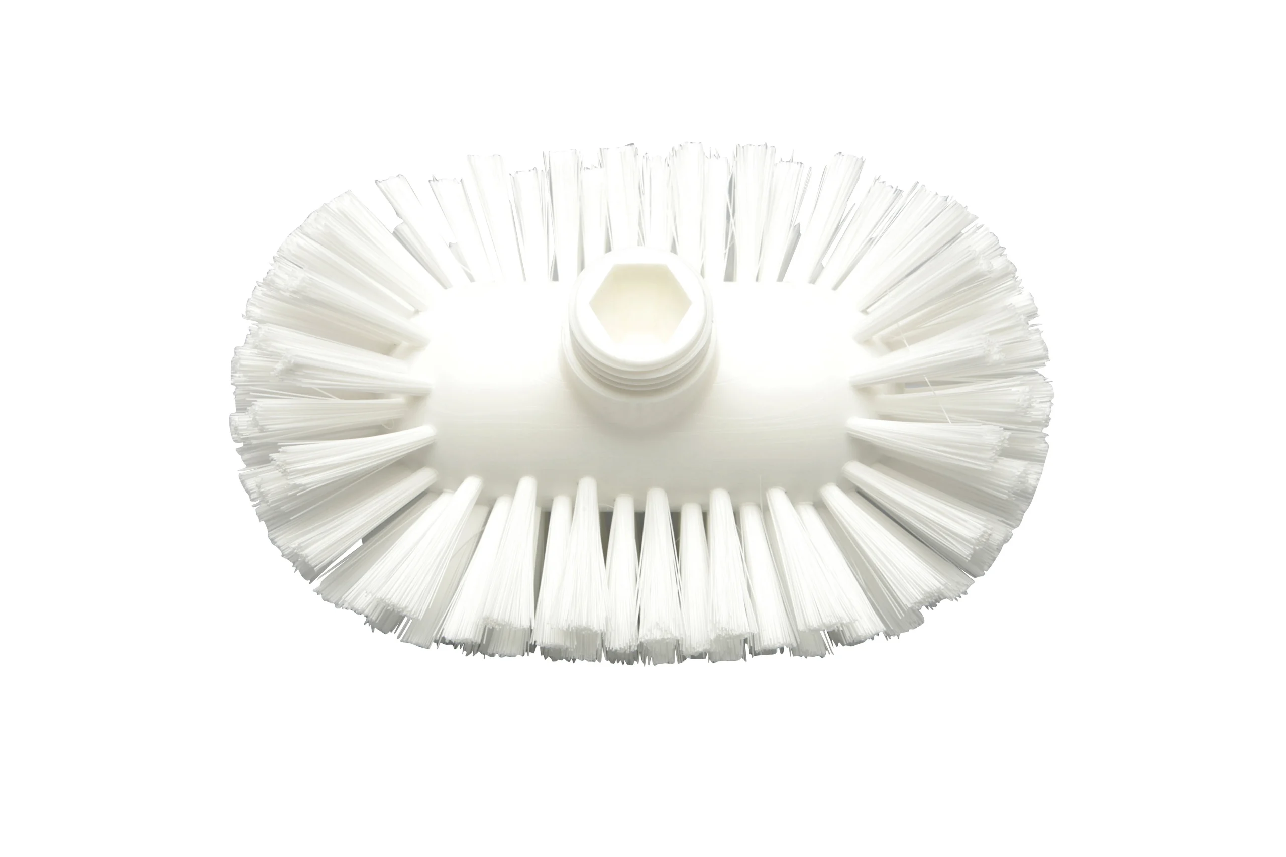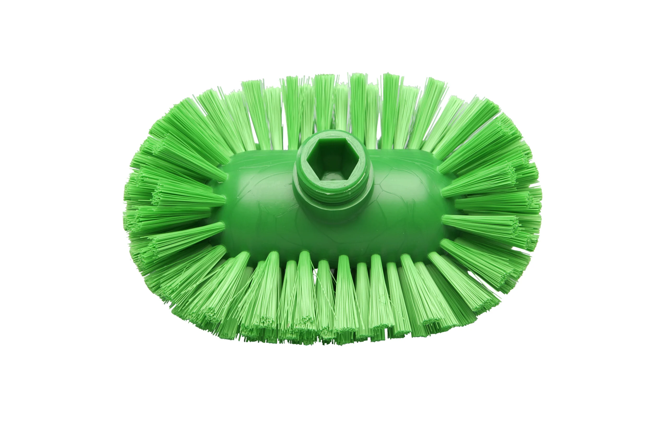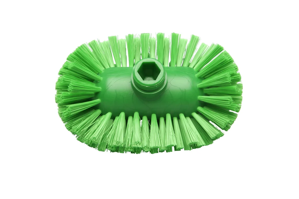 Escobillones diseñados para llegar a esquinas, ángulos y zonas difíciles dentro de recipientes, tanques o desagües. Su estructura curva y robusta facilita la limpieza de puntos complejos, mientras que sus filamentos de PBT ofrecen resistencia al uso sin deformarse. Fabricados en polipropileno, toleran temperaturas de hasta 80 °C y son compatibles con mangos de rosca externa. Ideales para limpieza húmeda en entornos industriales.