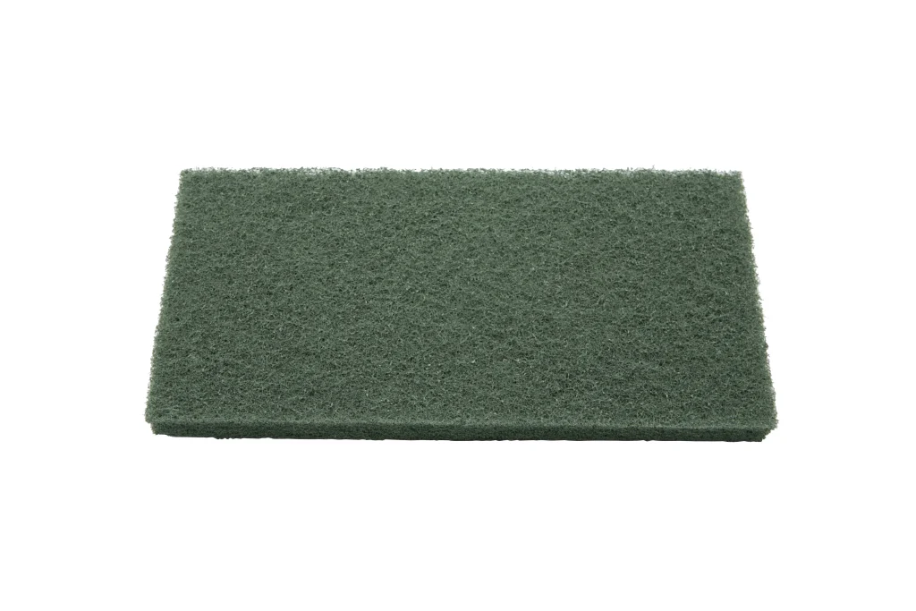 Pad abrasivo de 250 x 120 mm fabricado con fibras sintéticas flexibles como nylon y poliéster, diseñado para eliminar marcas y residuos en pisos, muros y otras superficies. Disponible en cinco niveles de abrasividad, fácilmente identificables por su color: muy suave (blanco), suave (rosado), medio (azul), duro (verde) y muy duro (negro). Soporta temperaturas de hasta 100 °C. (Compatible con 47101 y 57101).